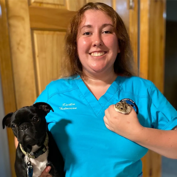 Olivia joined the team in June of 2021 during her internship. She started as a Veterinary Technician in May of 2022 after she graduated with an Associate's degree from Alfred State University. She currently has one cat, "Jenni" (Jennifer Lopez) and one dog, "Benni" at home, and she is a great addition to the staff here .